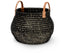 The Cairo Basket – Small in Black features a tightly coil-woven seagrass form wrapped in sleek black cotton, offering a modern yet organic storage solution. Fitted with sturdy leather handles, it combines ease of use with refined design flair. Its compact size makes it ideal for holding small items like blankets, magazines, or toys while adding stylish texture to any room. Handcrafted with quality materials, this basket seamlessly blends functional storage with contemporary elegance.