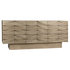Each of this refined washed walnut sideboard's nine drawers are beautifully embellished with a repeating hand-carved pattern. With no hardware to distract from the lines, it is a sleek and sophisticated storage option for any distinguished decor.